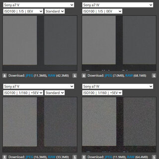 α7Vのセンサーのダイナミックレンジは、Photons to Photosのテストでも優秀な結果を残していましたが、今回のdpreviewのテストでも非常に優れた結果で、RAWでシャドー部を大きく持ち上げた際のノイズ(上の画像を参照)では旧型のα7IVとかなり大きな違いがあることがわかりますね。